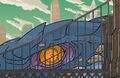 Godzilla in his egg in the ruins of Madison Square Garden