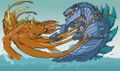 Godzilla fighting the Fire Monster