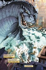 Godzilla (ゴジラ Gojira) is an ancient reptilian kaiju who appears in two consecutive issues of Godzilla vs. Marvel: Godzilla vs. Hulk and Godzilla vs. Spider-Man. Godzilla appeared in the Thunderbolt Ranch in Texas to help his ally Mothra, who had been trapped by the mind-controlled spider monster Kumonga, and ended up battling two Mechagodzillas and Kumonga before allying with the Hulk against Hedorah. Godzilla's next appearance came when he journeyed to New York City to destroy the Venom Symbiote, clashing with both Spider-Man and the symbiote in the process.
