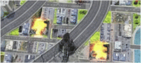 *Godzilla has 4 types of Atomic Ray attacks: Normal Ray (default), Spiral Ray (very powerful attack, gauge charges slowly), Vapor Ray (weak attack, gauge charges quickly), and Radioactive Smoke Rings (fires smoke rings, multiple rings fire slowly)