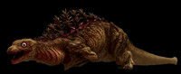 The 3rd Form stands upright, is a dull dark red or brown color, and is almost twice as tall as the previous form. It has almost-white dorsal fins, and blood-red coloration running down its back under the fins from the heat that it generates. Additionally, it now possesses small forearms and its legs are more stretched out as a result of standing upright.