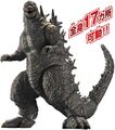 A figure of Godzilla from Godzilla Minus One was released in Japan on November 2, 2024 (delayed from October 19),[3] and in the U.S. on October 22.[4] It stands around 15 cm tall, includes 17 points of articulation and an atomic breath accessory attached to an alternate jaw piece.
