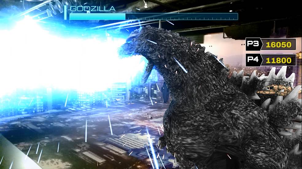 The player must face off against Godzilla and prevent him from coming ashore once an alarm sounds off. Players wear a "G-Force Goggle" VR headset and "Maser Blaster" wrist straps, the latter enabling them to fire Maser attacks at Godzilla by pointing their arm toward him.
