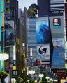 An ad for the Japanese PlayStation 4 release of Godzilla underneath the Godzilla Head