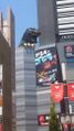 Godzilla paused his rampage through Shinjuku to stare and roar at the Godzilla Head resting on the heavily damaged Hotel Gracery Shinjuku, just below his eye level, before JSDF helicopters resumed firing at him.