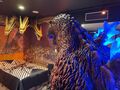 A Godzilla diorama in the hotel's lobby featuring Shin Godzilla