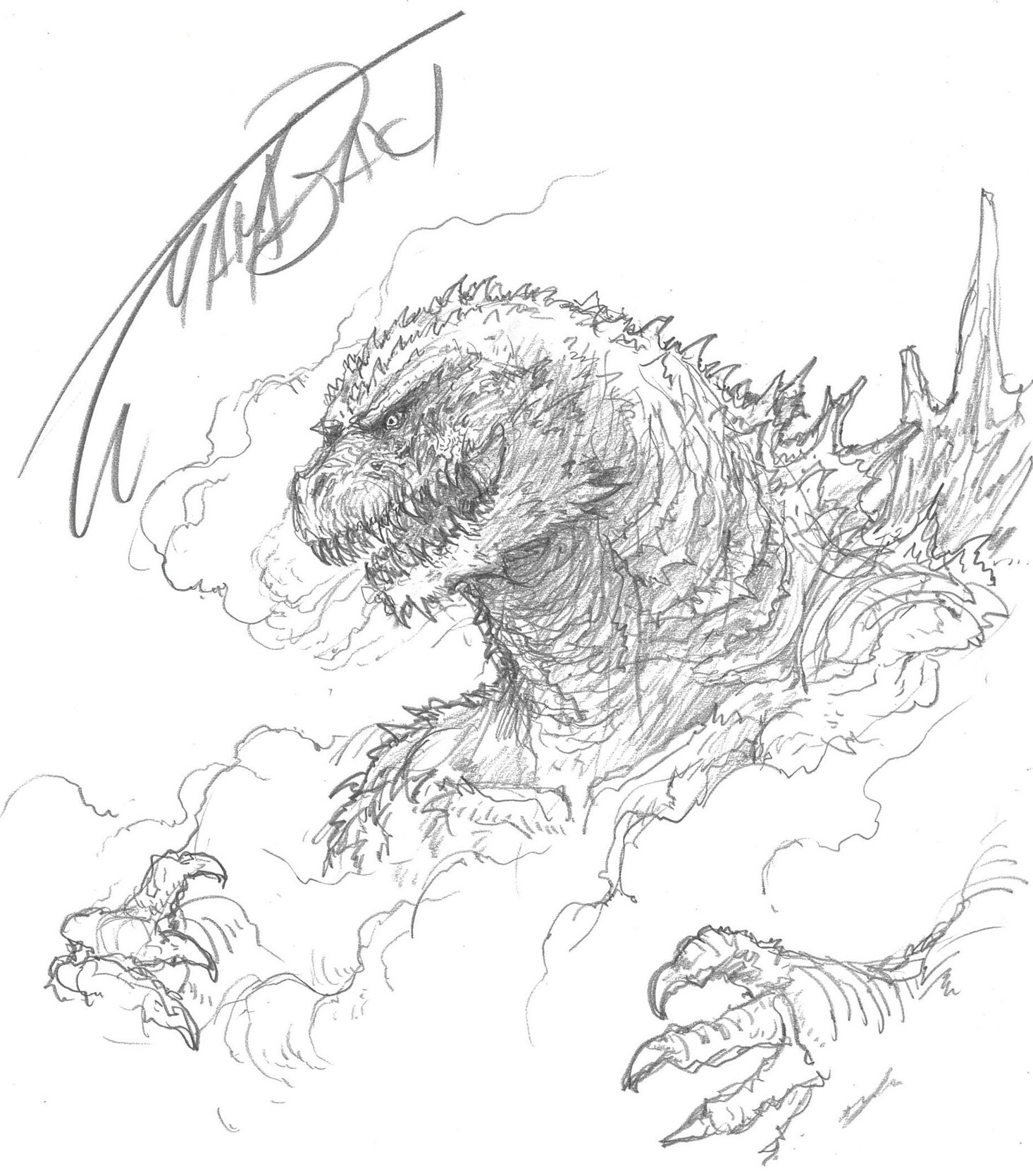 Godzilla charity drawing done by Takashi Yamazaki during filming[1]