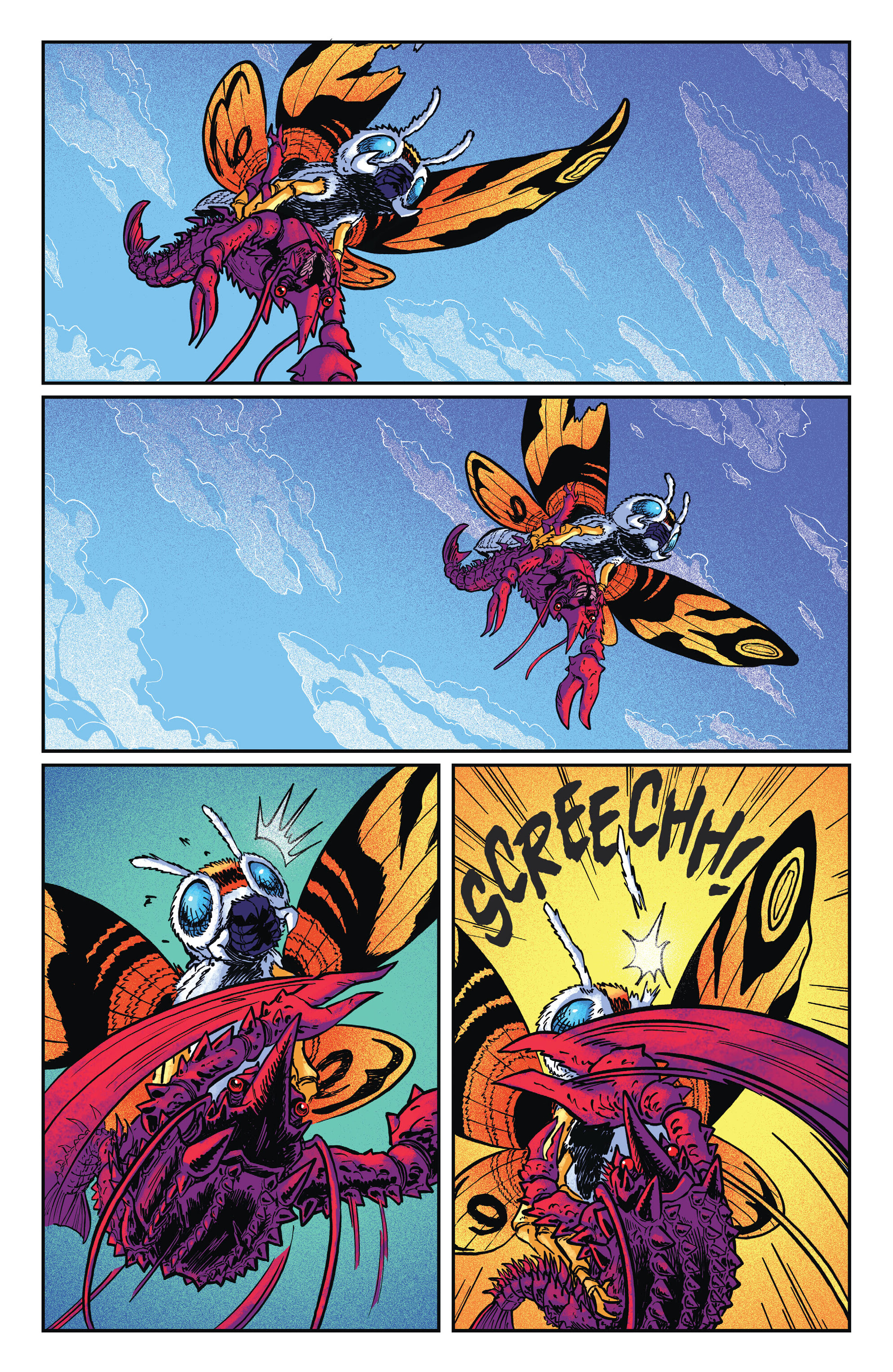 Tokyo, 2024. Ebirah flings debris at Mothra, scoring a hit on her wing, while a W.K.O. aircraft carrier sits helplessly offshore. Aboard, Dr. Saito bemoans their recent loss of Mechagodzilla as Guadalupe "Lupe" Ramos reports that while Mothra has little energy left, her last attack seemed like a feint. Just then, Mothra releases her poison spores above Ebirah, incapacitating him long enough for her to grab him and fly up high. Ebirah revives and swings his claws wildly, slicing off one of her antennae; she counters by spinning them around at supersonic speeds and hurling Ebirah back down to earth, knocking him unconscious. The W.K.O. celebrates, but quickly pivots to a medical rescue mission after Mothra thuds to the ground. Ramos, despite her extensive knowledge of Mothra, recommends a colleague for the job. Sergeant Nick Young asks Saito for permission to lead a squadron of fighter jets in a search for the stolen Mechagodzilla, wanting to redeem himself, but is denied due to the need to guard the W.K.O. staff helping Mothra. Saito promises to call for reinforcements, however.