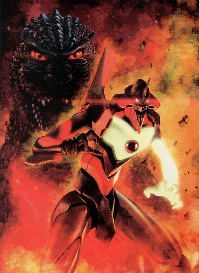 Godzilla vs. Evangelion art but Hidetaka Tenjin