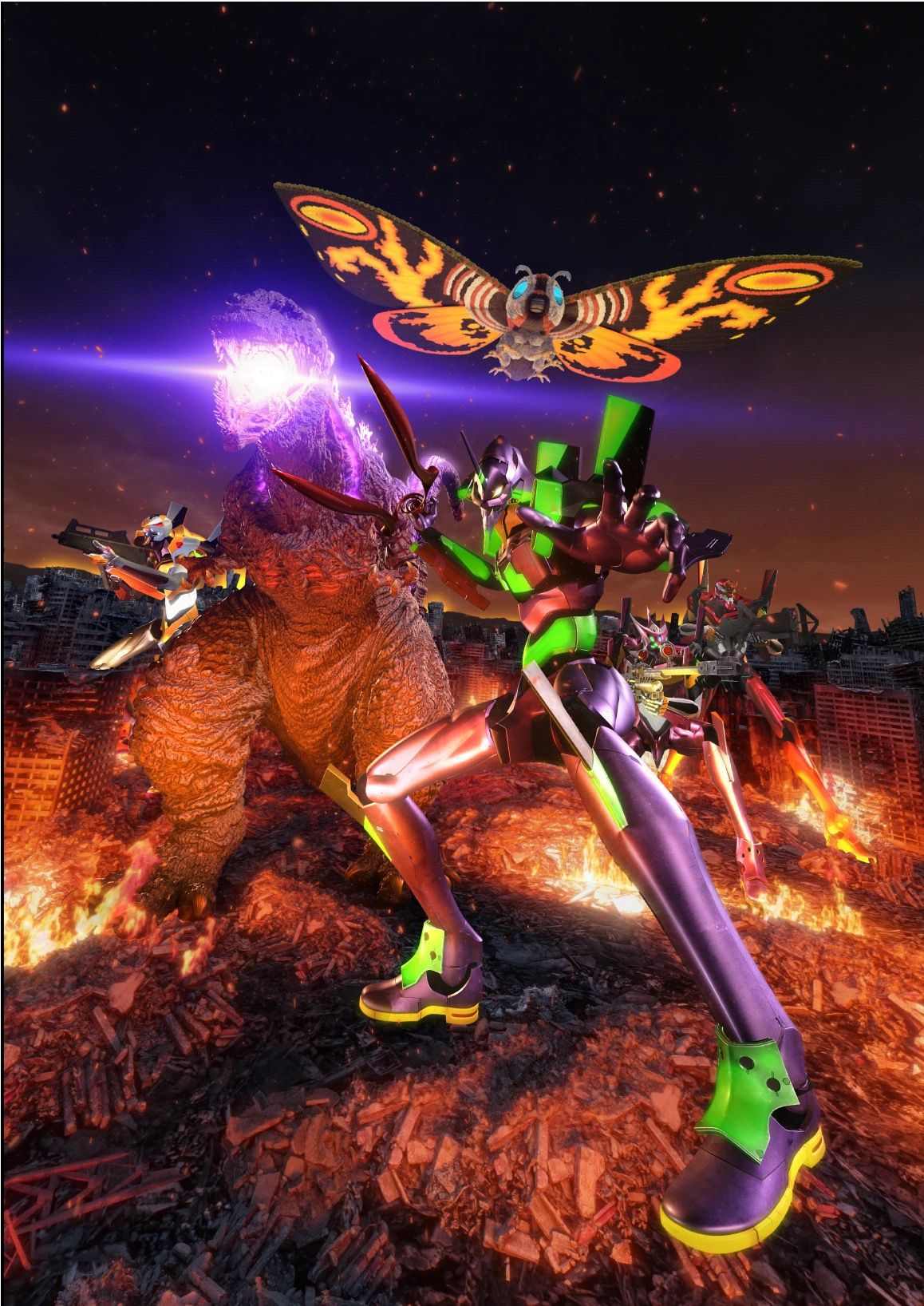 In January of 2017, S.H Monsterarts released a repaint of their Rebirth Godzilla mold in Evangelion Unit-01 colors. The release was limited to Japanese websites and not released in the United States.