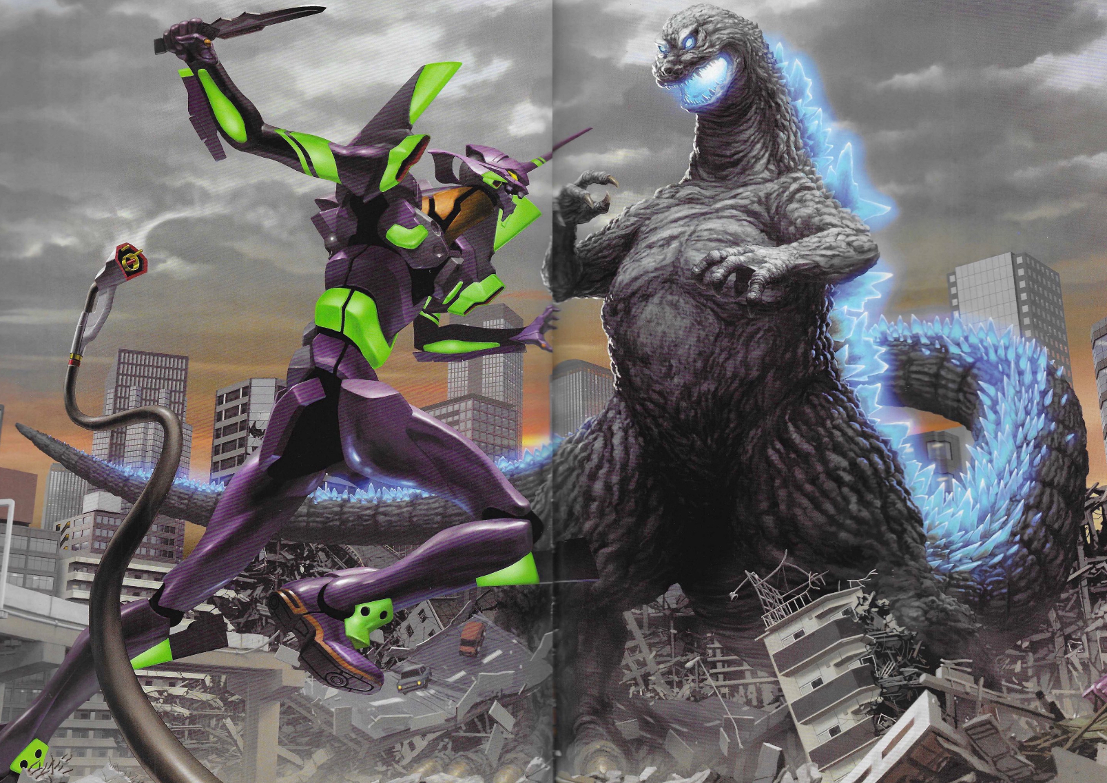 Godzilla vs. Evangelion collaboration art by Akira Amemiya and Yuji Kaneko