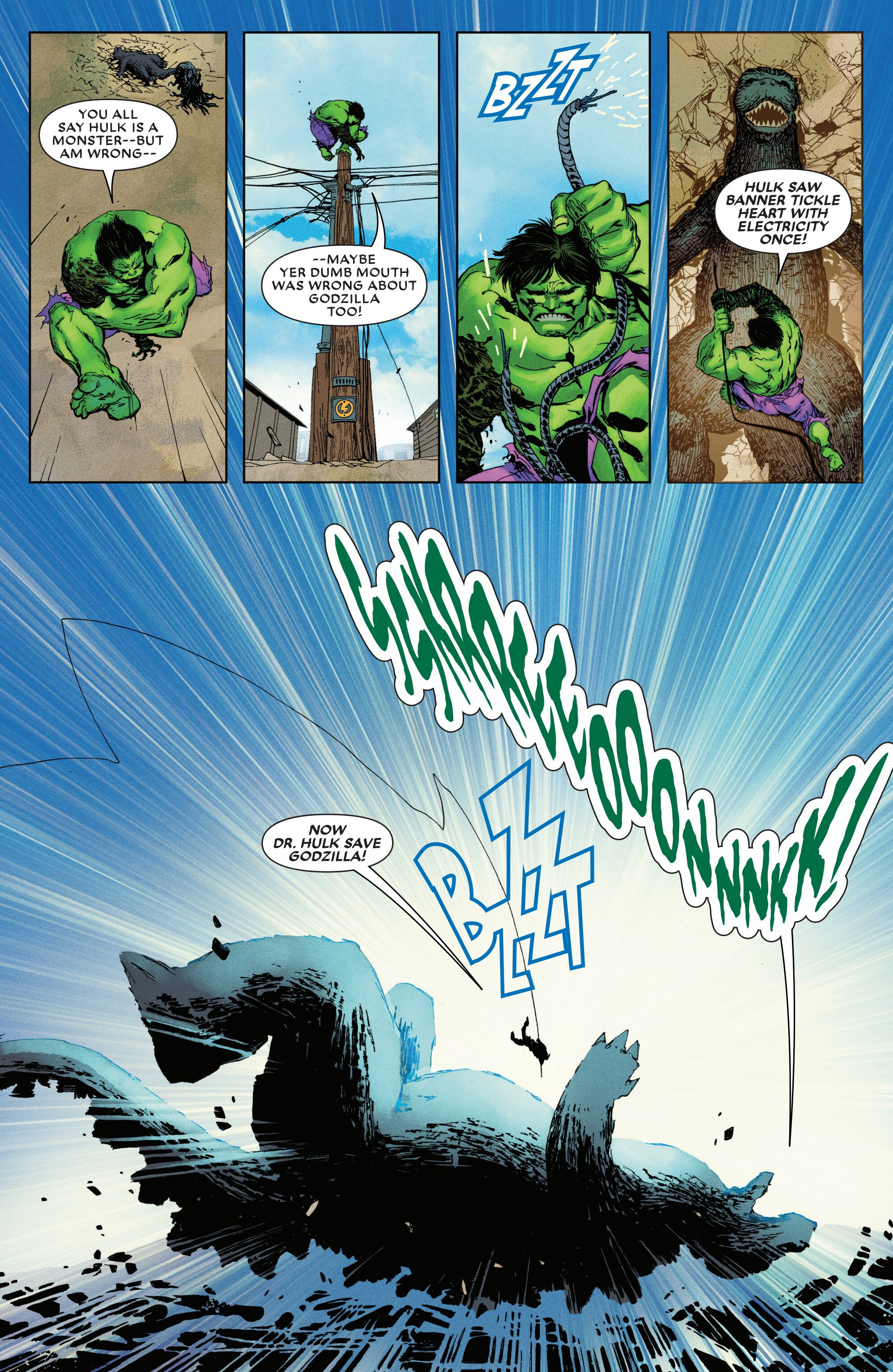- This is the first proper meeting of Godzilla and the Hulk in a story, the two having only appeared together in a piece of art from Godzilla #1 and a variant cover for Incredible Hulk (vol. 4) #17.