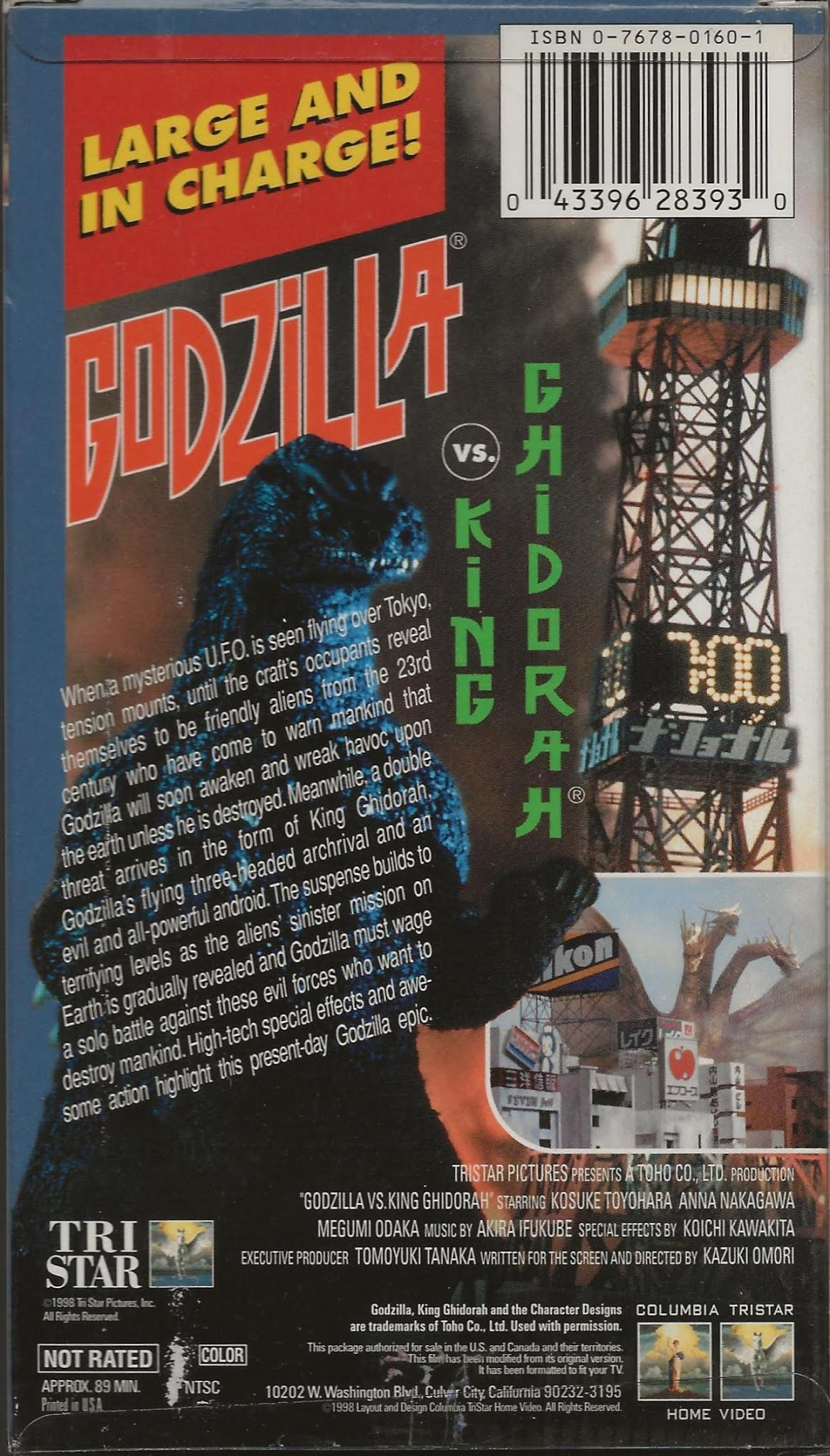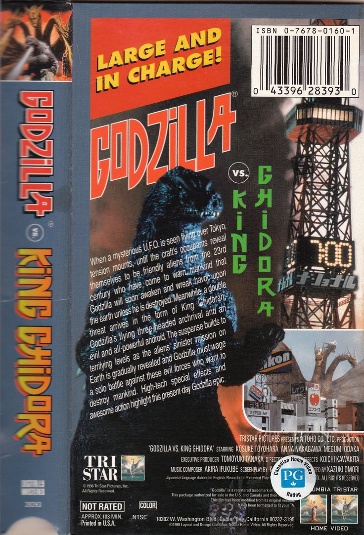 Initial TriStar Godzilla vs. King Ghidora VHS side and back cover