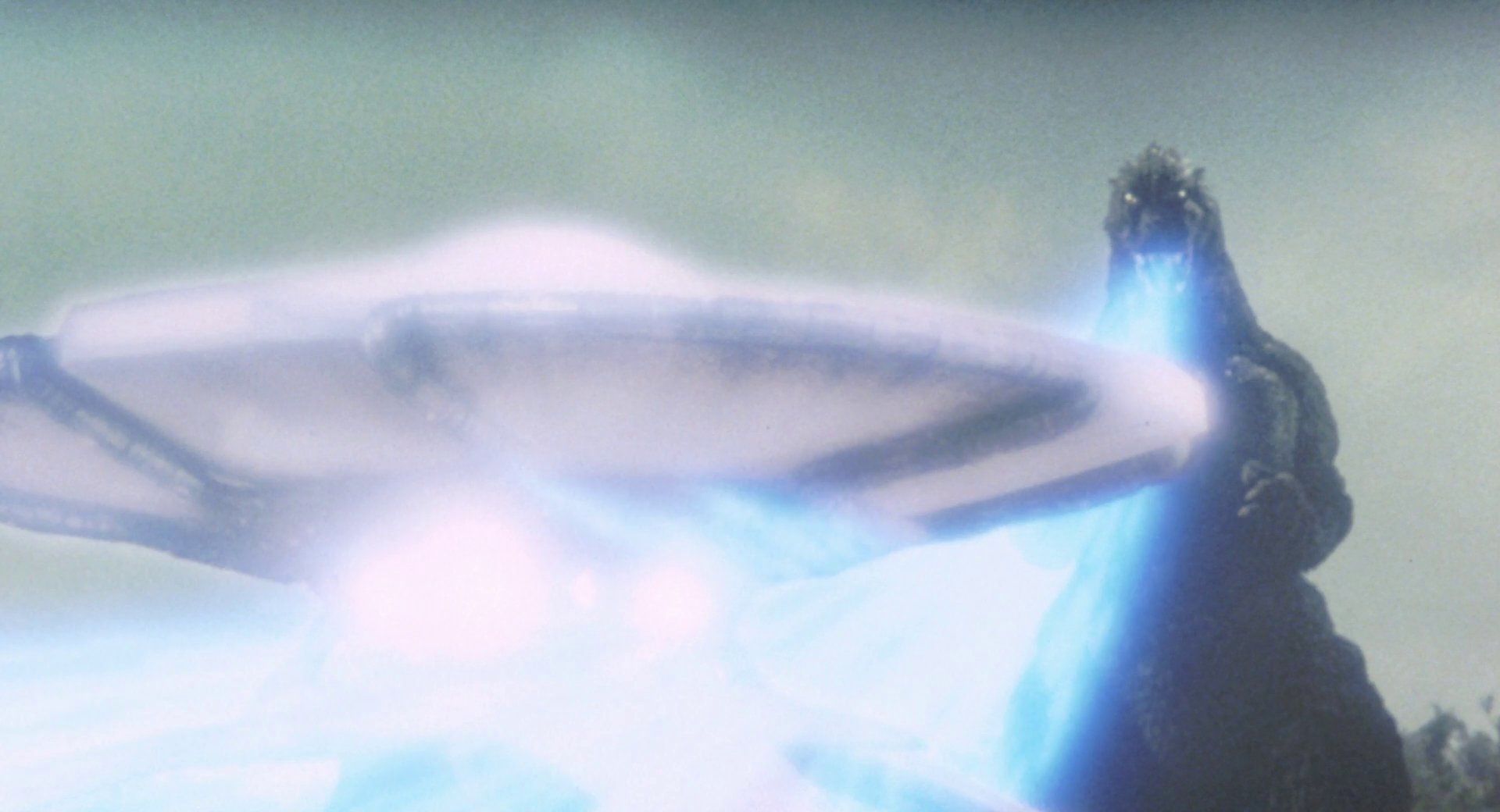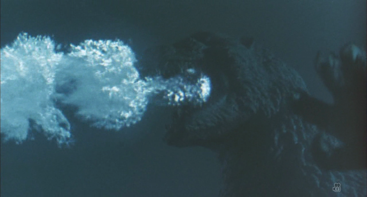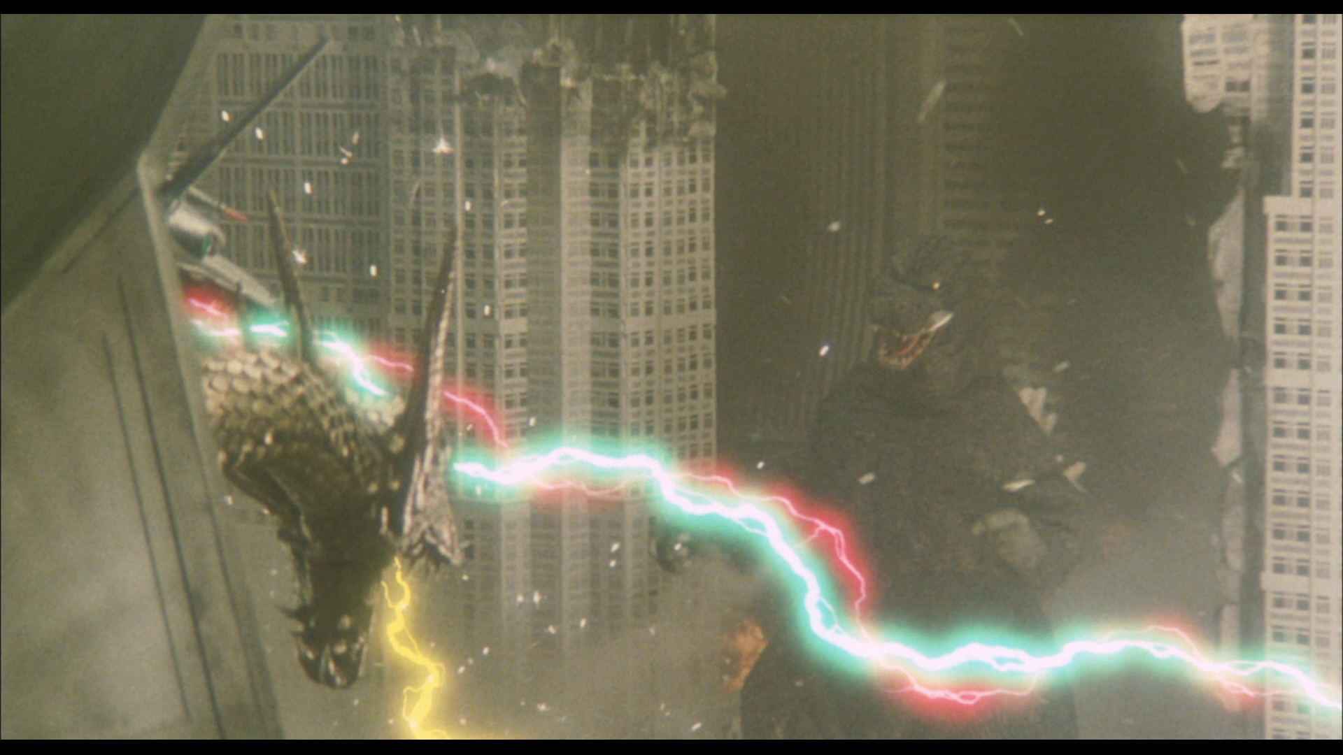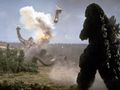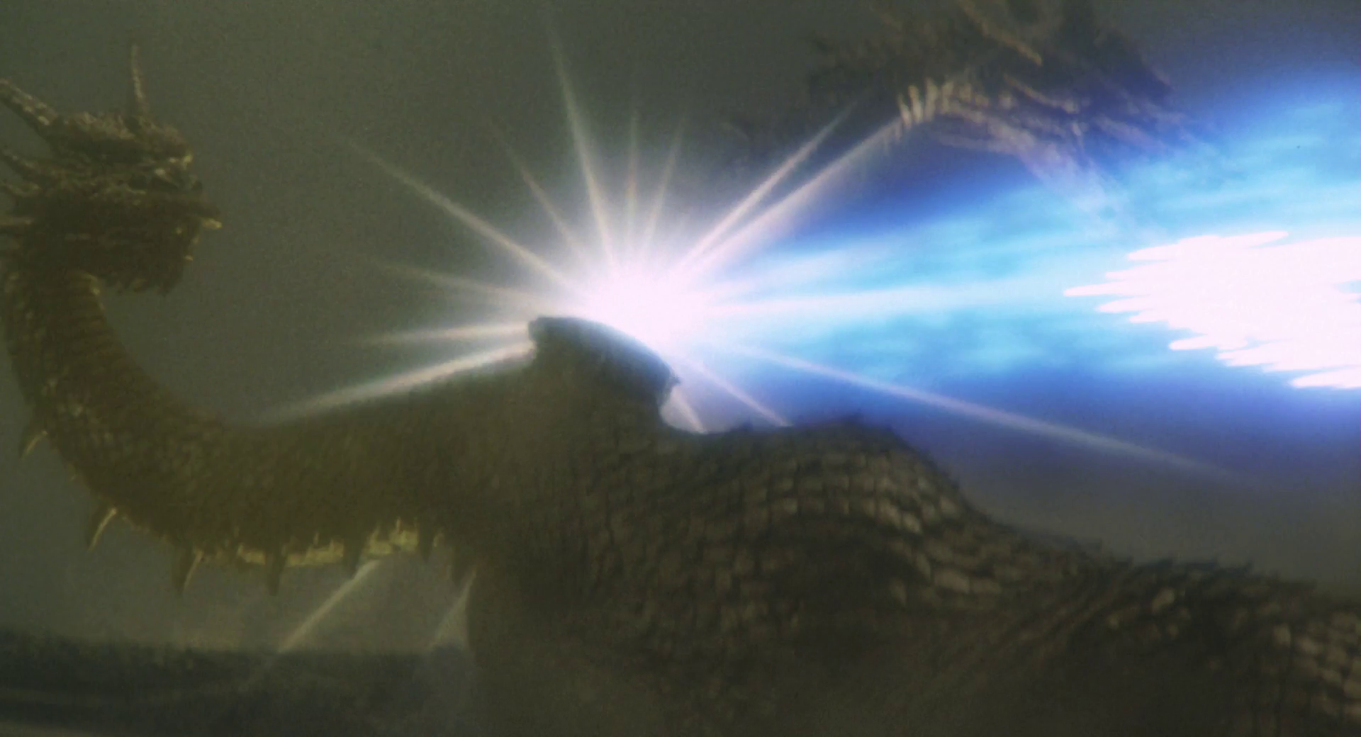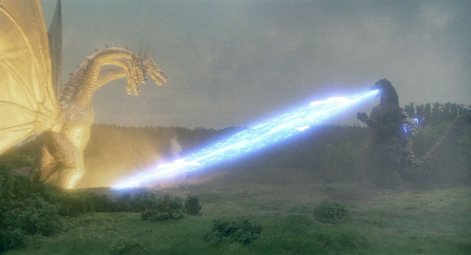 Godzilla fires his atomic breath at King Ghidorah