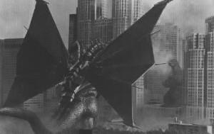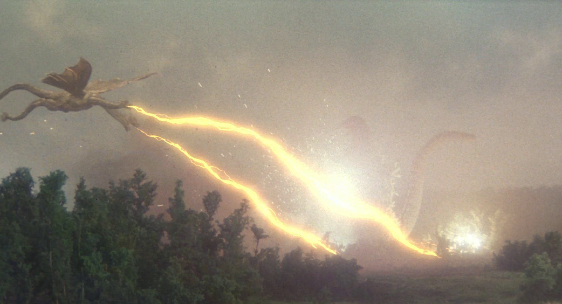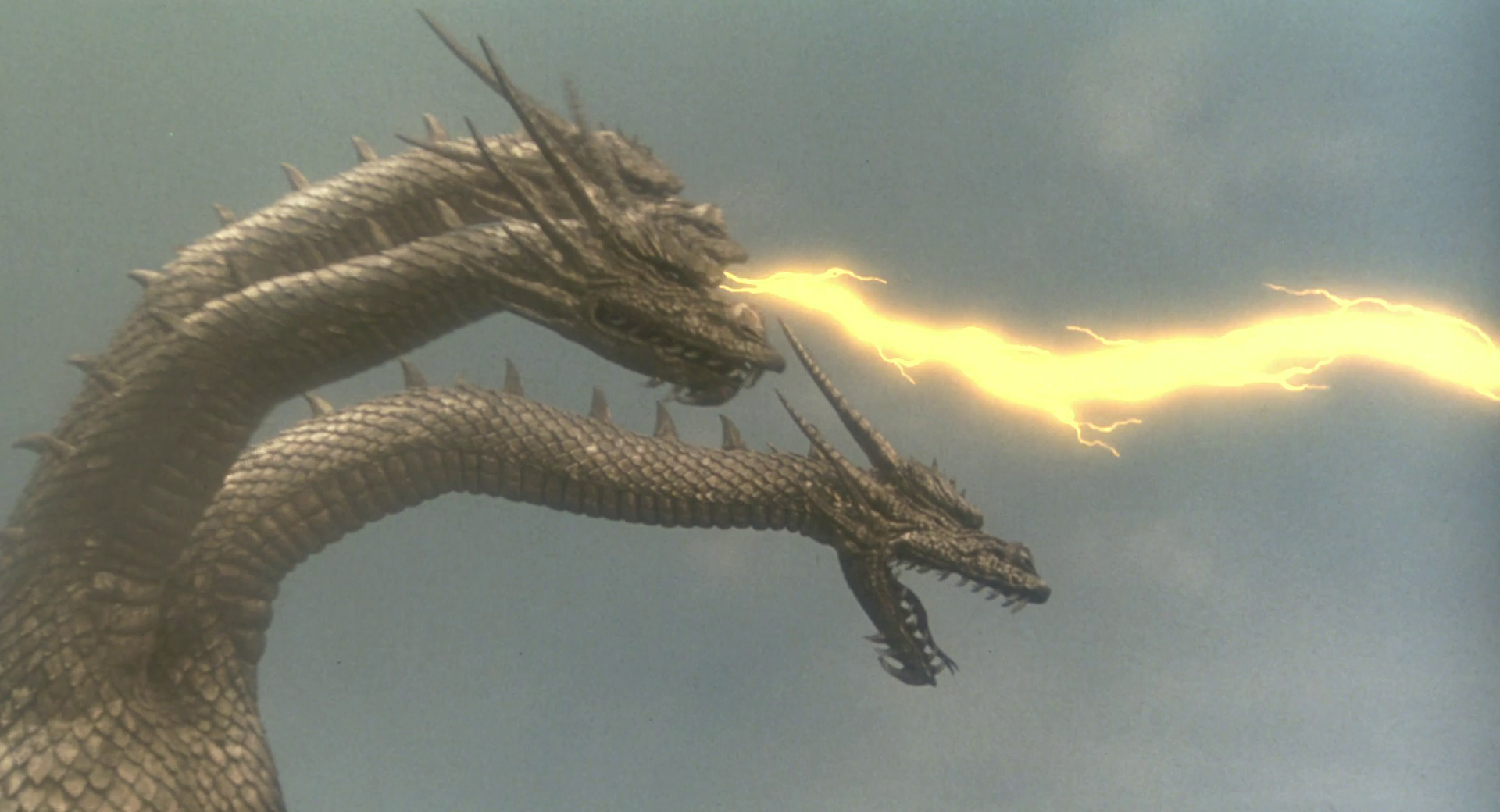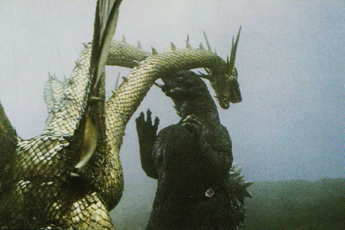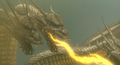 King Ghidorah takes flight and spits gravity beams at Godzilla