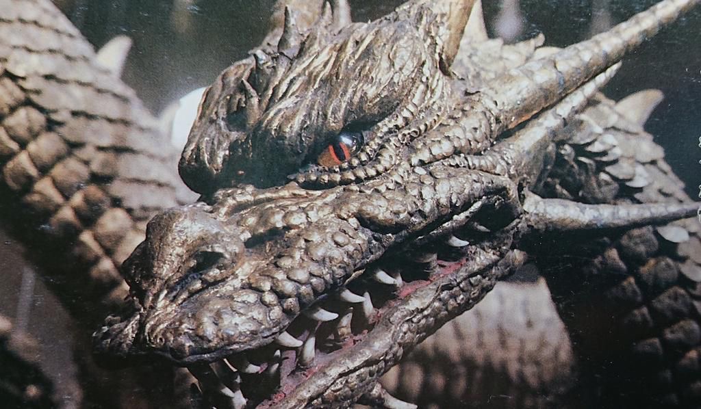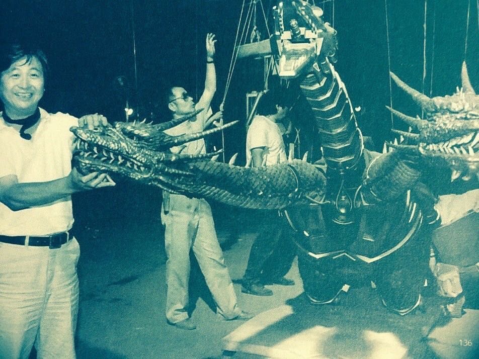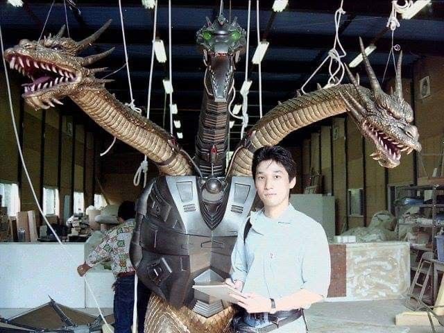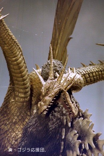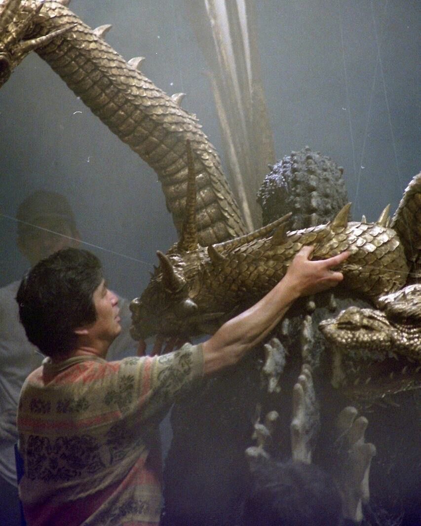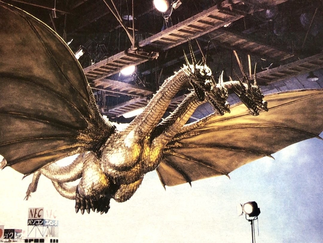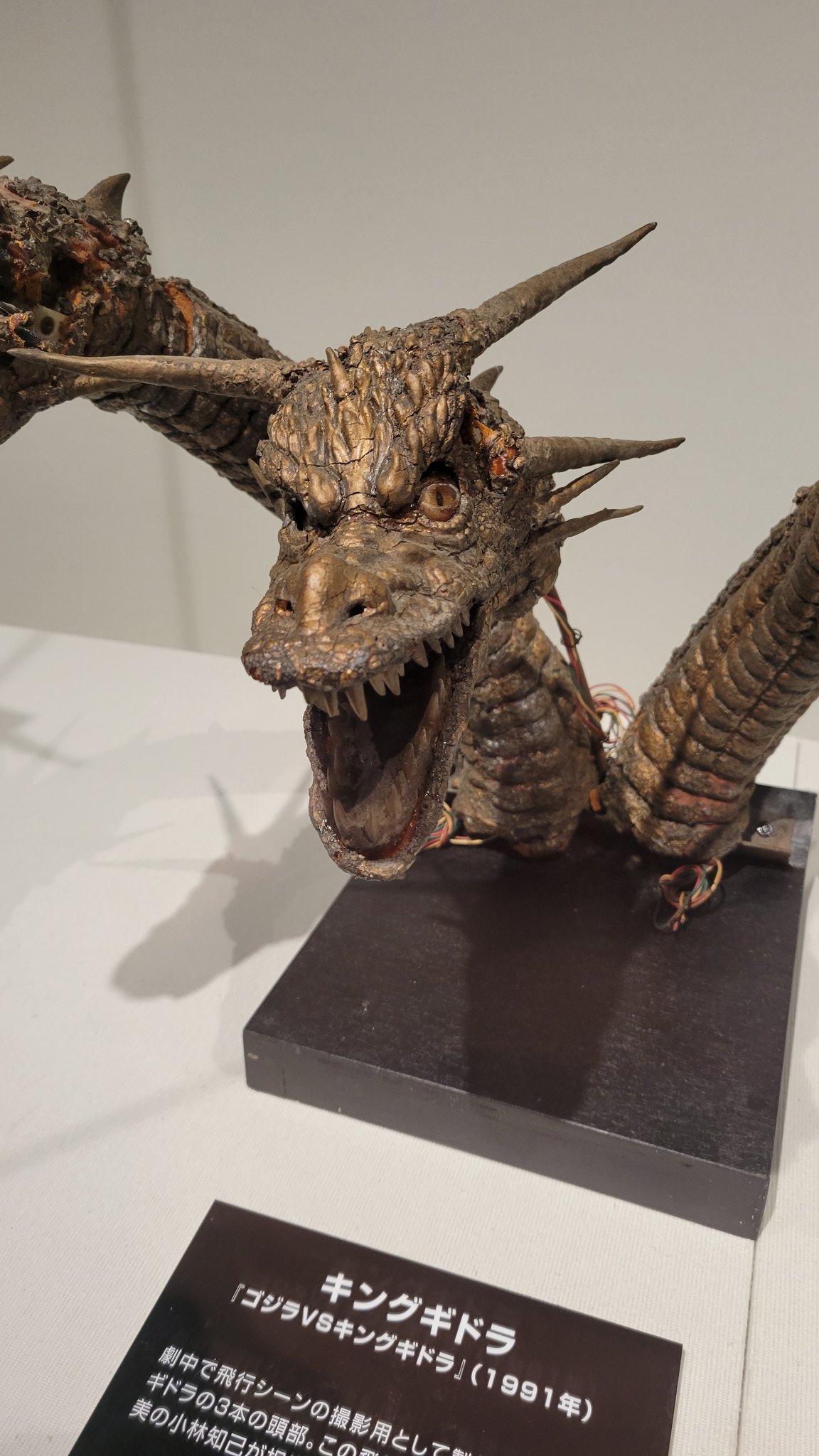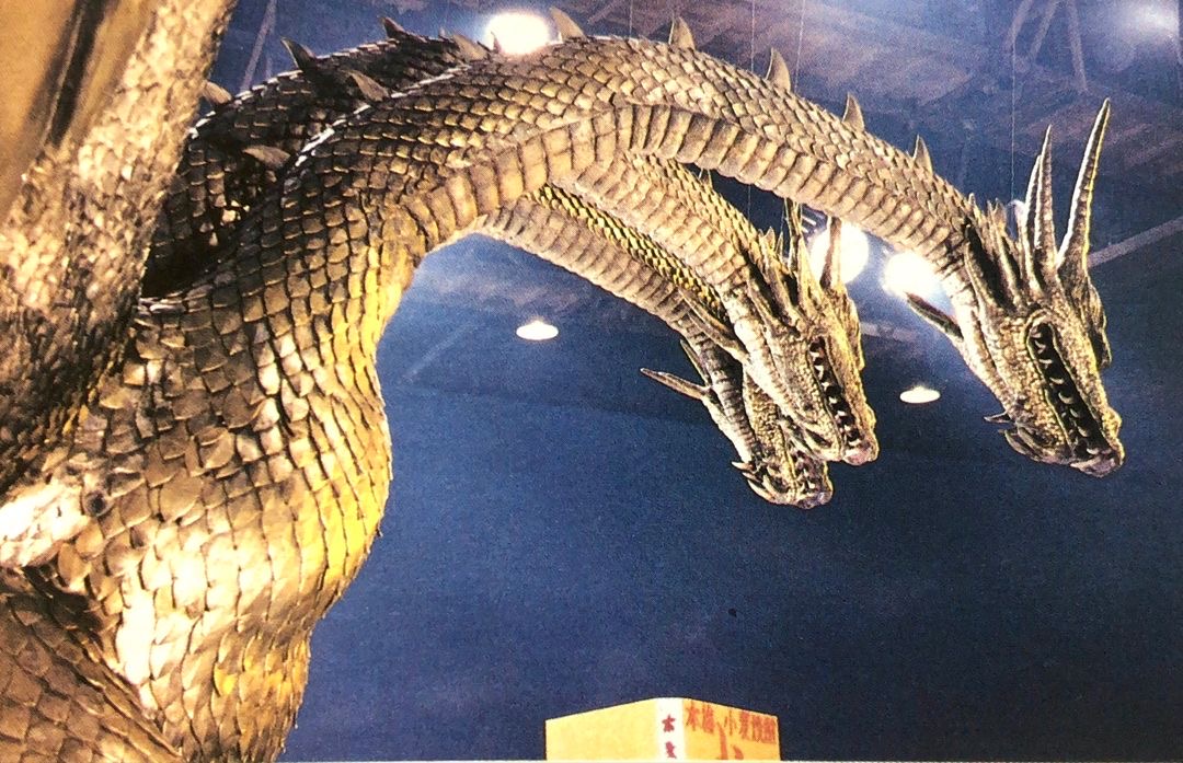 Heisei King Ghidorah's heads on display in 2026.