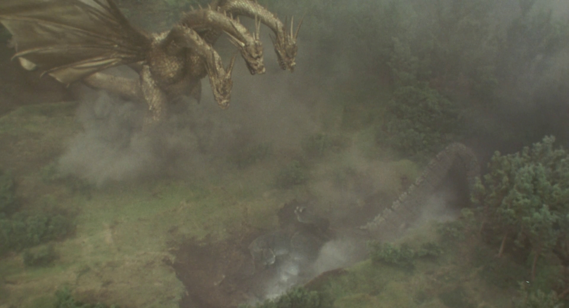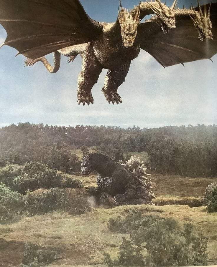 King Ghidorah prepares to land