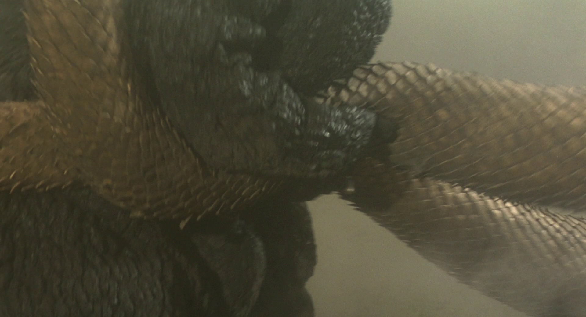 Godzilla grabs King Ghidorah's tails
