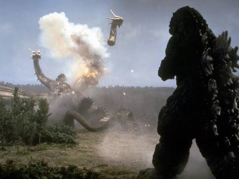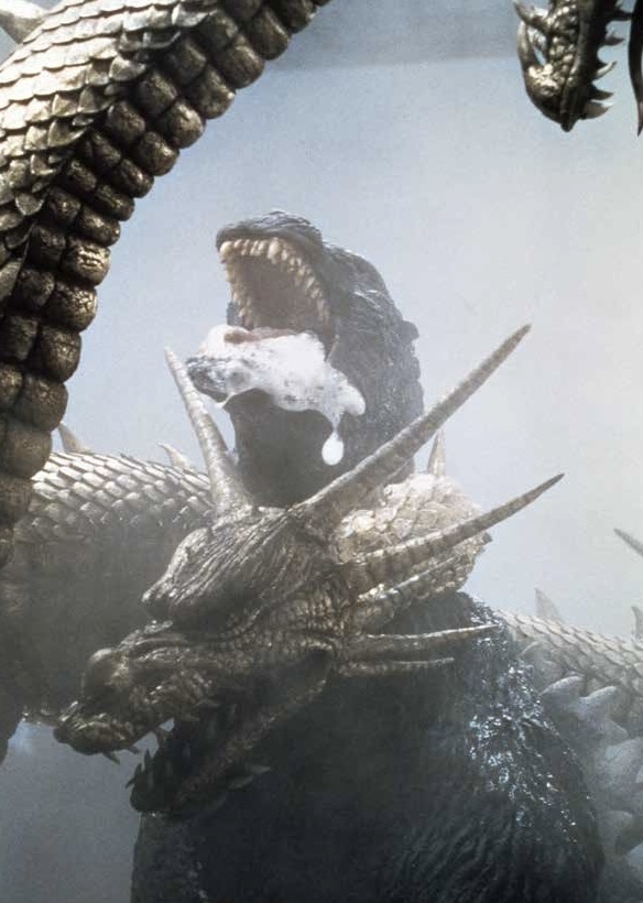 King Ghidorah's middle head is decapitated