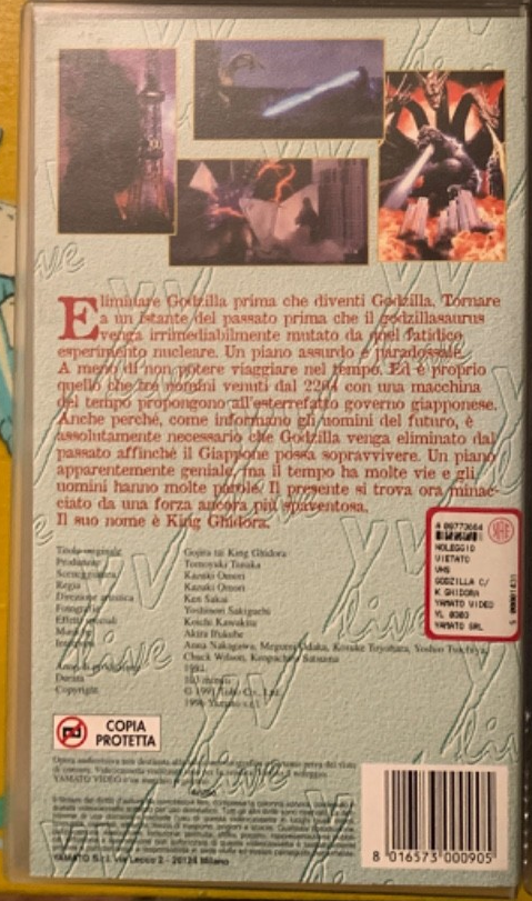 Yamato Video Godzilla vs. King Ghidorah VHS back cover