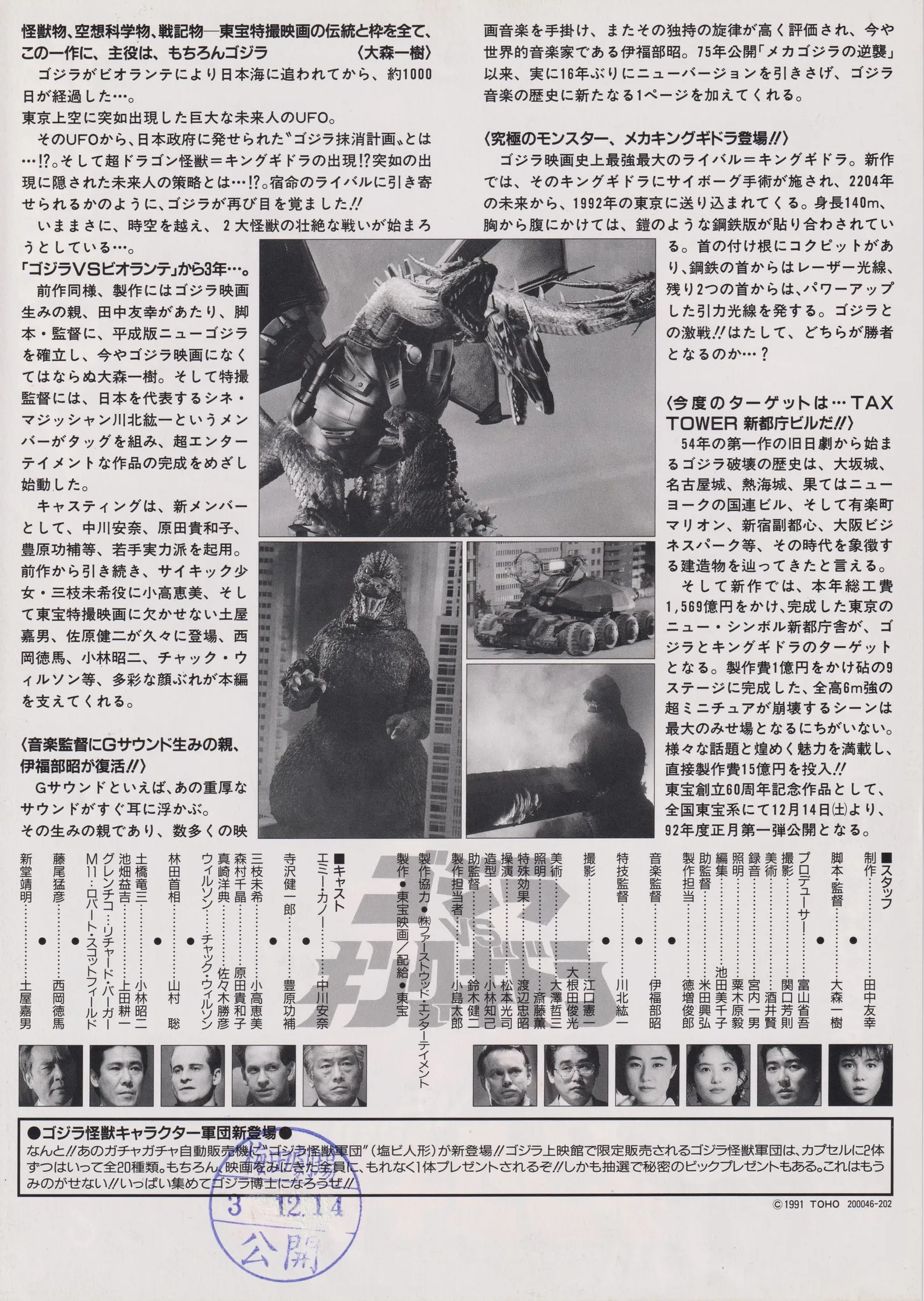 International Godzilla vs. King Ghidorah pamphlet back cover