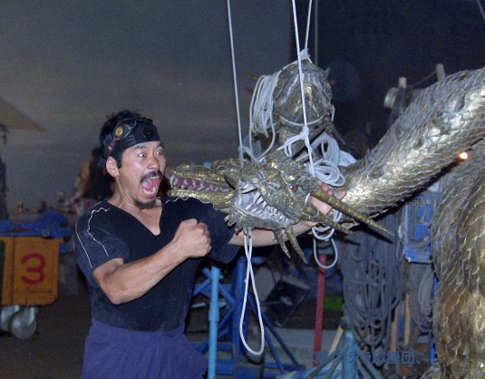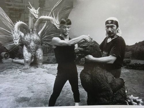 Kenpachiro Satsuma dances in the GhidoGoji suit between takes