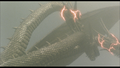 Mecha-King Ghidorah and Godzilla plummet into the ocean