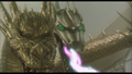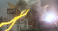 Godzilla uses his Nuclear Pulse against Ghidorah
