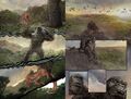- The size of several creatures and structures throughout the comic is noticeably inconsistent, such as Godzilla in relation to an oil rig and two fishermen, Titan Hunter in relation to RM Construction employees and a Sker Buffalo carcass, and Kong in relation to two Spineprowler cubs.
