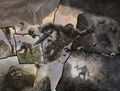 Drinking from a stream in the Hollow Earth, Kong is ambushed by a smaller cat-like Titan called a Spineprowler. He grabs it by the throat and slams it into the ground, but it dodges his next strike and escapes his grip when he seizes it by the tail. When it leaps at him again, he sends it sailing away with a punch. It retreats as he pounds his chest in victory, only to step on a pressure plate and trigger a hail of electrified metal arrows from nearby launchers. A scarred man nearby, Raymond Martin, calls for the Titan to be taken away.