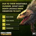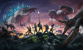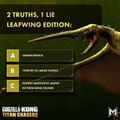 - Though it uses characters from the Monsterverse, Godzilla x Kong: Titan Chasers is not strictly canon to the rest of the series, with a post on the mobile game's official X account describing it as "canon-adjacent," elaborating, "We exist alongside the canon films and TV but in a separate space, to allow us more flexibility with game mechanics and timelines".[4] This was perhaps best exemplified by the Godzilla Evolution event, in which Godzilla morphed into his Evolved form off the coast of the Siren Isles, assisted by the player using Solar Charged Scales, which contradicts Godzilla x Kong: The New Empire, in which he becomes Godzilla Evolved under the Arctic.