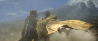 In Destroy All Monsters, Gorosaurus used his Kangaroo Kick on King Ghidorah, hitting the dragon directly in the back, causing damage to the dragon's spine and leading Ghidorah to topple over on the ground.