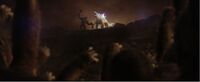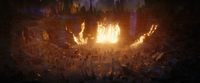 The Skar King traveled to the upper layer of the Hollow Earth with four Great Apes, destroying Monarch Outpost One and discovering signs of Kong's presence. After returning to the Subterranean Realm, the Skar King returned to the Living Caves and left the other four apes - Suko, One-Eye, Stone Fist, and Catcher - to lie in wait for Kong.[11]