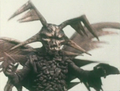 After the usual master, underling conflict between Maoh and Tonchiki, a new monster is placed within one of the desired children's playthings as a part of yet another blood retrieving scheme. The children try interacting with the toy using a magnet, but it unexpectedly flies towards the magnet and explodes releasing the vicious Blanker. As the children run in panic, they are stopped by Tonchiki who traps them in between him and the monster. However, they realize that they can easily escape out either side, which they do, and activate their assigned Green Calls in distress. Greenman appears not a moment too soon and distracts Blanker long enough for the kids to safely leave the premises. Both Blanker and Greenman run up a small hill, and once elevated begin fighting. Once engaged in combat, it becomes apparent that Blanker fights very offensively and goes in for quick but devastating strikes. Luckily, Greenman is easily able to counter most attacks, using a variety of nimble maneuvers. Sure enough, Greenman gets the best of his adversary who lay motionless on the ground until instructed to grow. Greenman too grows, and wastes no time in doing so, eager to destroy Blanker once and for all. They hastily charge at one another, and Greenman immediately tackles Blanker to the ground, and repeatedly slams his body to the ground. The monster is not one to give up however, knocking Greenman away and returning to his feet. After more strategic combat, Blanker reveals his trump card, firing a tractor beam of sorts from his mouth which pulls Greenman to him. With similar motions as Greenman, Blanker too tackles Greenman and slams his body down multiple times as well as stomping on his midsection amongst many more brutal actions. He is relentlessly beaten to the point of mechanical failure, seemingly impairing his sight. But, just in time, Greenman reaches out on the ground, and to his surprise finds a Green Call which recharges his body. He springs into action once more, retaliating against Blanker. He tries his hardest to fulfill Tonchiki's orders, firing his beam once more. Though, Greenman is not phased by the attempt, quickly pulling out two Ear Boomerangs and holding them in an 'X' formation which repels Blanker's beam right back at him and pushes him far away. Blanker is then ultimately defeated using one of the boomerangs in Greenman's hand.