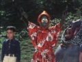 The episode begins in the Underground Cave with Tonchiki whispering in to the ear of one of the subordinates. Maoh, furious as ever, yells at Tonchiki who casts a spell on the minion, causing it to gain a red sundress and bonnet as well as granting Tonchiki a white bonnet. Because of this, Tonchiki bursts in to laughter and after being yelled at once more by Maoh reassures him of the subordinate's ability and teleports away with it. Maoh mutters to himself in the Underground Cave proclaiming that Tonchiki is a fool. Just above the cave, on the surface, the now called "Cross-Dressing Kaijin" has transported himself to a playground where he begins handing out balloons to a group of young children. The children begin to frolick about the playground with their new balloons but Tonchiki quickly utters his trademark spell, causing the balloons to pop and release a mind-controlling gas. Two boys from the group are effected and are brainwashed into primal subservient monsters. They begin to chase down the other children with their new master, as Tonchiki follows far behind. The remaining three children stop behind a tree and activate their Green Calls. Greenman, answering the signals, appears before the Cross-Dressing Kaijin. Greenman allows for the children to escape but his arms are grabbed by the brainwashed children, allowing for their master to beat on his chest. The monster is able to effortlessly beat Greenman down with his minions, the hero unable to land a single hit. As he is occupied, Tonchiki and the brainwashed children take it upon themselves to chase the remaining children. However, Greenman's instincts kick in as he sees the children in danger, springing to his feet and knocking the Cross-Dressing Kaijin off of him. As Greenman runs after the endangered children, the monster attempts to throw a bomb at him to halt him, but it ends up exploding near Tonchiki which causes him to fall to the ground and teleport back to the Underground Cave before losing consciousness. Maoh orders another subordinate to attempt to wake Tonchiki up, pulling a rope which causes two drums which are attached to the ceiling to crash in to one another, causing a loud noise. The attempt is unsuccessful, so the minion decides on a much less conventional method. He begins to urinate on Tonchiki, which causes him to immediately wake up and teleport back to the overworld. As he returns to the surface he sees the Cross-Dressing Kaijin and his minions doing battle with Greenman. Greenman is once again beaten down, as Tonchiki calls for the monster. Cross-Dressing Kaijin summons two pink orbs in his hands which he waves over a bench, summoning 10 explosives which the mind-controlled children begin lobbing at Greenman. Greenman is miraculously able to evade all of the explosions and is able to make his way towards the Cross-Dressing Kaijin. Once in proximity, he grabs two of his Ear Boomerangs off of the holsters on either side of his head and destroys both of the creature's orbs. This causes the children to regain their minds and run away from the fight, leaving Greenman to fight Tonchiki and Cross-Dressing Kaijin. After only a few hits on Tonchiki, he begins to run away only to be yelled at Maoh who is looking on from a viewing screen in the Underground Cave. Greenman manages to rip the dress from the subordinate's body, leaving him powerless as Tonchiki attempts to stop him. Both Tonchiki and the powerless subordinate attempt to escape up a hill, but Tonchiki repeatedly rolls farther down the hill. Eventually, they manage to make it to the top as Tonchiki falls to his side, and the subordinate uses the last of his explosives to try to stop Greenman from following. Greenman once again dodges all of the projectiles and begins to use his Breaster attack. Tonchiki teleports back to the Underground Cave to avoid destruction and the subordinate is blasted to death.