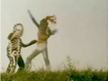 Still enraged at Tonchiki for his evident failures, Maoh scolds him while smiting the ground with lightning bolts to get his point across. Although fearful, Tonchiki presents his master with Danbaraki, an aquatic-looking creature who's bones are exposed on one side. Maoh approves of the monster and has Tonchiki plant it within a small ball sitting near a group of children. Said children are playing hopscotch, one of them making it all the way to the end and retrieving the rock. The boy throws the rock down a hill, only to chase after it and find the ball where Danbaraki is lying dormant. He picks up the ball and throws it into the woods, causing it to burst into flames and reveal Danbaraki. Danbaraki grabs the boy and begins to strangle him, but the other children use their Green Calls to summon Greenman. Greenman appears atop the hill, looking down at Danbaraki who throws the child off to the side and begins to climb up. Once in proximity to each other, Greenman continuously throws himself at Danbaraki, but is instantly repelled each time. The monster proves to be quite strong, bringing down Greenman with a single punch to the chest. Although weaker due to Danbaraki's blow, Greenman effortfully attempts to inflict damage on him, but is instead further beaten. The hero does however manage to flip Danbaraki and roll him back down the hill, but he is not phased. Following the orders Maoh, Danbaraki grows to giant size. Greenman uses his machinery to match Danbaraki's height, and the two carry on with their battle. Greenman immediately grabs Danbaraki's arm and holds it behind his own back. Danbaraki breaks free of Greenman's grip only to be struck in the face. Greenman tries to shoot Danbaraki with a Leg Arrow, but it ricochets off of his tough skin. Greenman then flips Danbaraki as he did earlier, and begins to whale on him, making every successful hit count. But, Danbaraki returns the favor, by flipping him and unleashing a barrage of hard-hitting attacks. Amazingly, Greenman is brought to near death, but is instantly energized by the children and their Green Calls. He picks himself up and begins to run circles around Danbaraki, in the hopes that it would confuse the monster. Greenman then utilizes his acrobatic skills to evade most of Danbaraki's attacks while subsequently damaging him with attacks of his own. Just when it seems Greenman is about to land the finishing blow, Tonchiki commands Danbaraki to exhaust all of his abilities. A stream of electricity shoots out of Danbaraki's mouth and straight at Greenman's head. Though, the beam barely does any damage whatsoever, and it is cut short by Greenman's Fire Fighting ability which also impairs Danbaraki's sight. Blinded, Danbaraki is vulnerable to all attacks, therefore Greenman uses his mouth beam to finish the job.