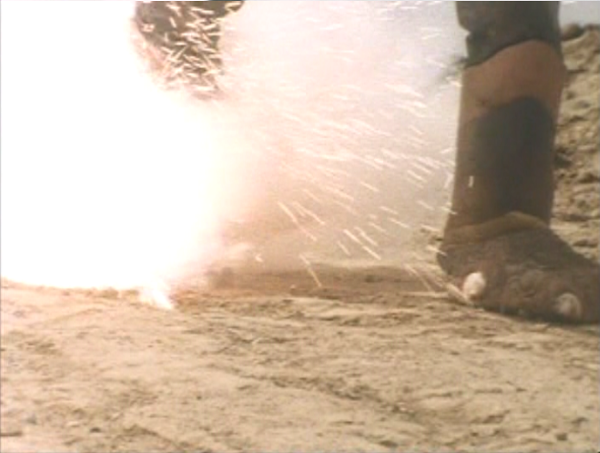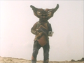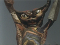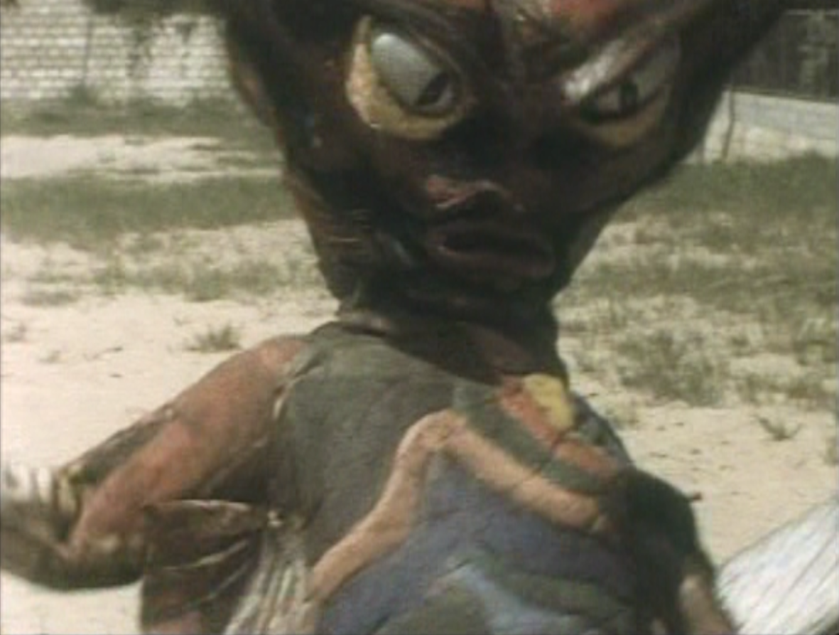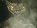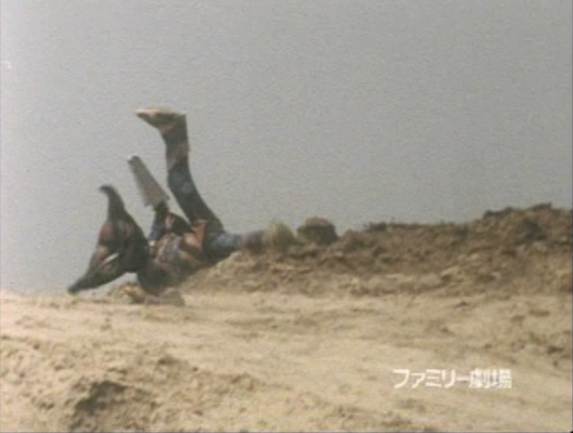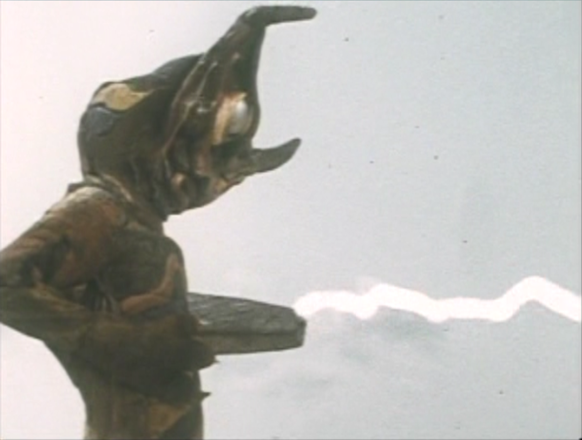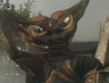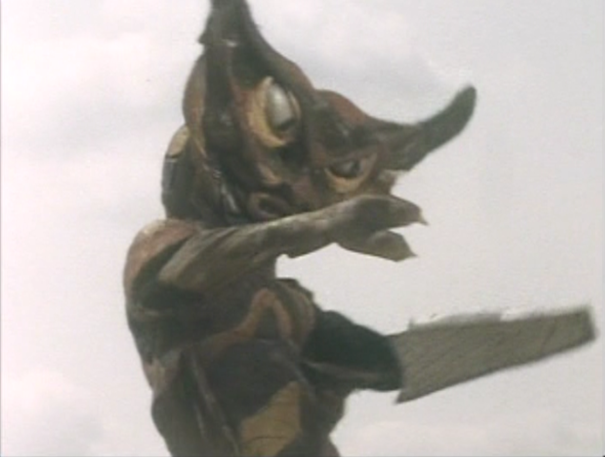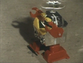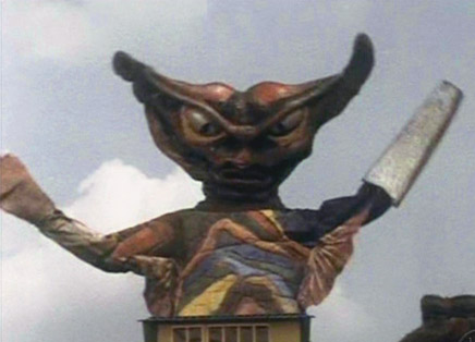 Furious at Greenman for foiling his plans once again, Maoh consults Tonchiki to see if he has a new plan. Sure enough, Tonchiki presents his master with yet another monster, Gegil. Gegil is planted inside a remote control for a controllable toy, which had been being used by a small child. The remote control flew out of the child's hand and began smoking until it eventually released Gegil. The monster chased him and his two other friends down a street until they summoned Greenman with the Green Calls. Greenman fought with Gegil, who proved to be quite weak, as Greenman was able to beat him to the ground multiple times. Acknowledging this, Tonchiki decided to make Gegil grow to a massive size. To continue their fight, Greenman also grew, and they pressed on. Despite now being grown, Gejiru continued to be beaten on. So, to even out the odds Gegil used his secret weapon, a cannon in his arm. The blast damaged Grenman's electronics and significantly weakened him. He attempted to use the Breaster attack, but his electronics were damaged too severely for the cannons to operate. Realizing he could not fall back on his electronics, Greenman decided on using sheer brute strength to beat the monster. He leapt high in the air, and landed behind Gegil, confusing him. The hero was then able to launch a surprise attack on Gegil, throwing him to the ground multiple times and finishing him off with a combination of his still-working weapons including the Leg Arrow and Ear Boomerang.