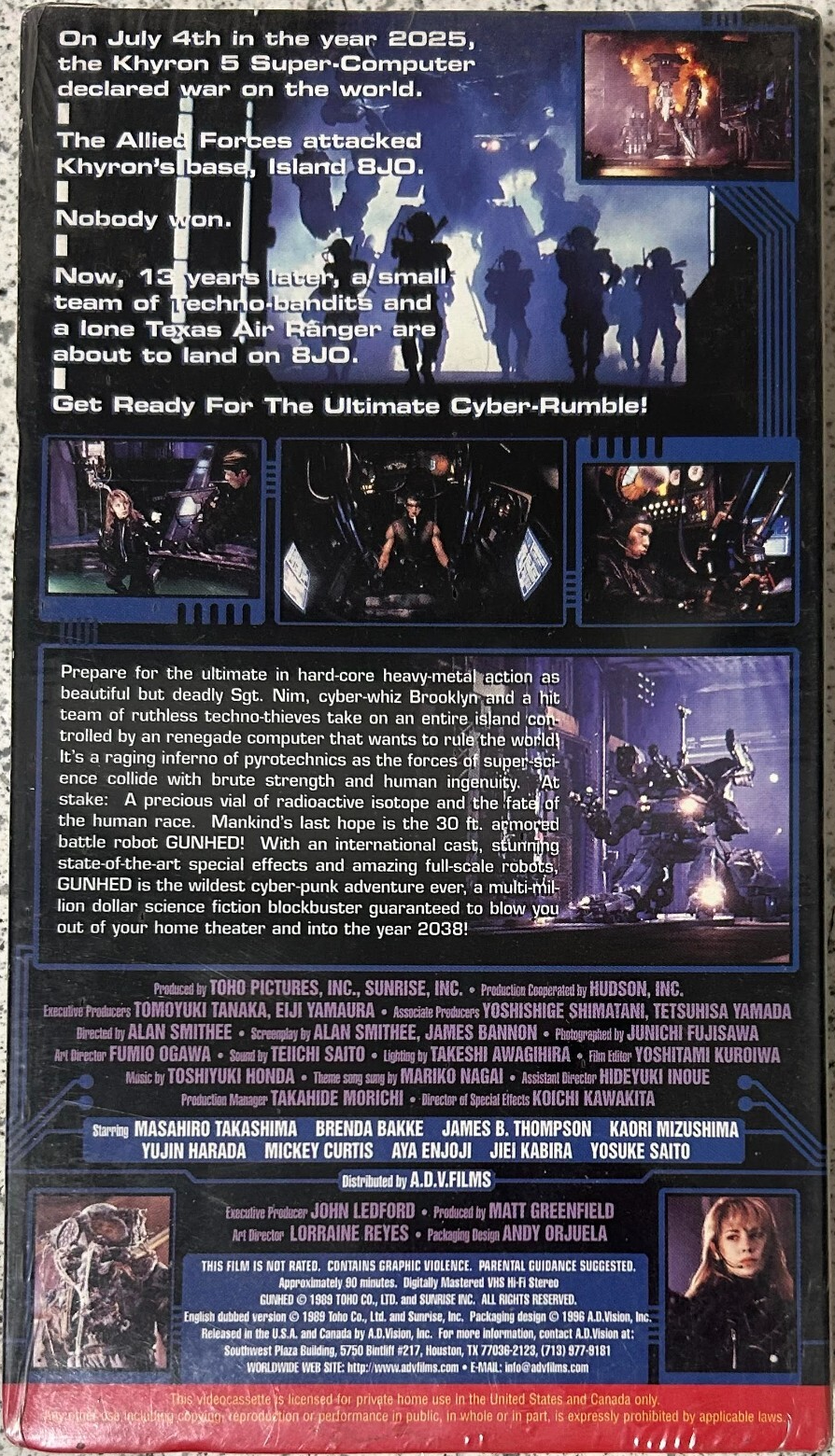 ADV Gunhed VHS back cover