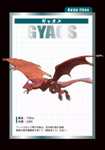 Gyaos (ギャオス Gyaosu) is a winged kaiju who first appeared in the 1967 Gamera film Gamera vs. Gyaos.