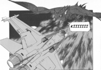 A newly-emerged Gyaos confronts a F/A-18E Super Hornet in Gamera vs. Barugon: Comic Version