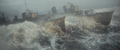 Hibiki and Yukikaze enduring the wave caused by the explosion of Yūkaze and Keyaki