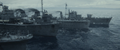 Hibiki (middle right) next to Keyaki (far right) along with Yukikaze (middle left) and Yūkaze (far left), being prepared for Operation Wada Tsumi