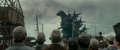 Following Godzilla's destructive raid on Tokyo's Ginza district, the Japanese government secured the return of four IJN destroyers as part of a desperate civilian-led plan to destroy the monster in Sagami Bay, dubbed Operation Wada Tsumi. At a dock near Sagami Bay, Hibiki and the other destroyers were prepared for the operation. Hibiki was fitted with a winch at the stern, with a cable connected to a winch on Yukikaze.