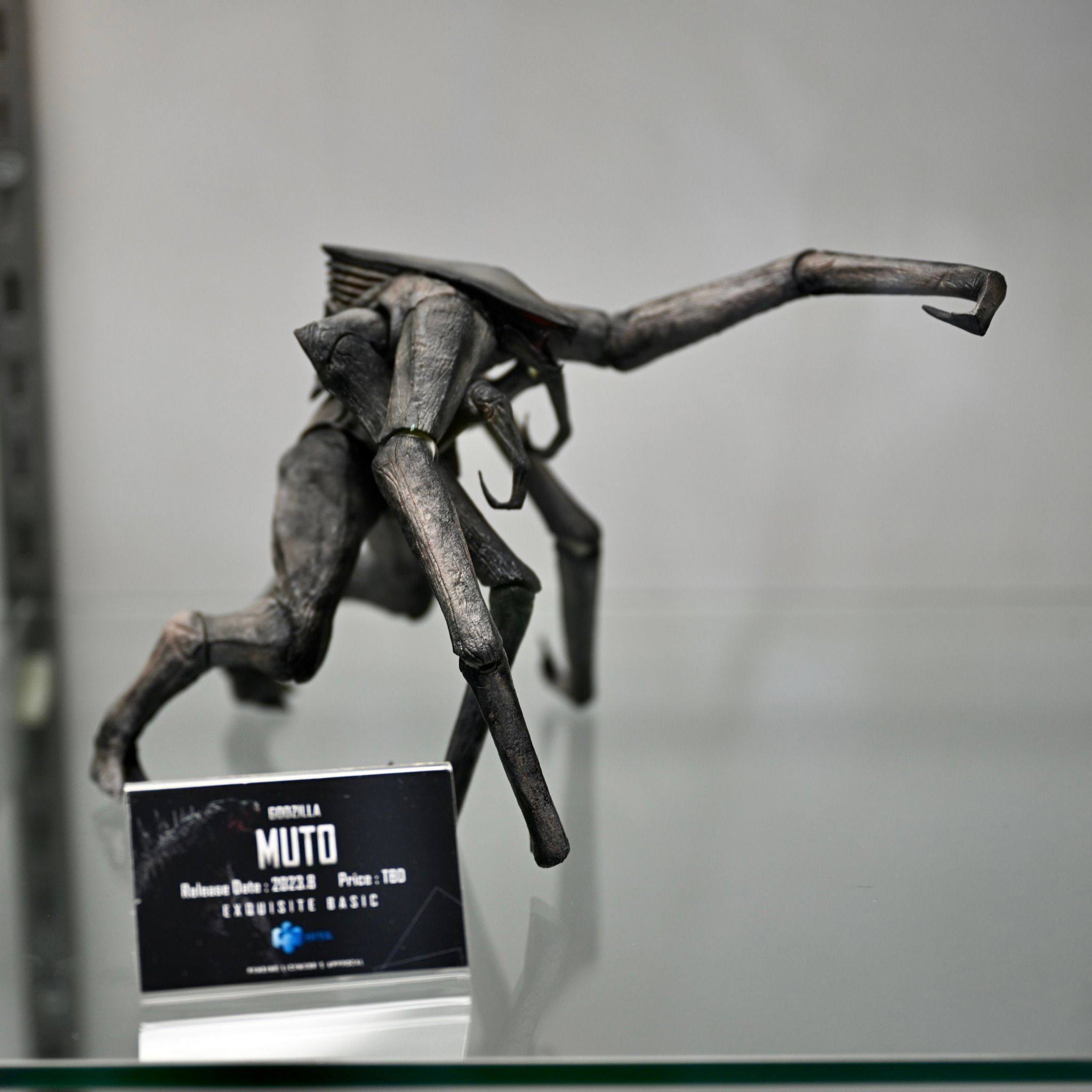 An Exquisite Basic Female MUTO, as seen in Godzilla, was revealed at San Diego Comic-Con 2023. On August 24, images of the final figure were revealed. The figure stands at 150 millimeters (5.9 inches) tall and features mandible pieces that can be posed independently.