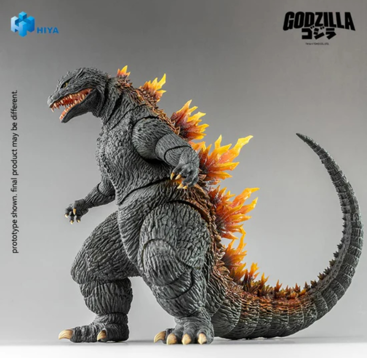 At San Diego Comic-Con 2025, Hiya Toys revealed an unpainted Exquisite Basic prototype of Burning Godzilla from Godzilla vs. Destoroyah. Promotional photos of the final sculpt were revealed in December of 2025, with preorders ending on the 31st. It features a second pair of hands and will release in the fourth quarter of 2026.