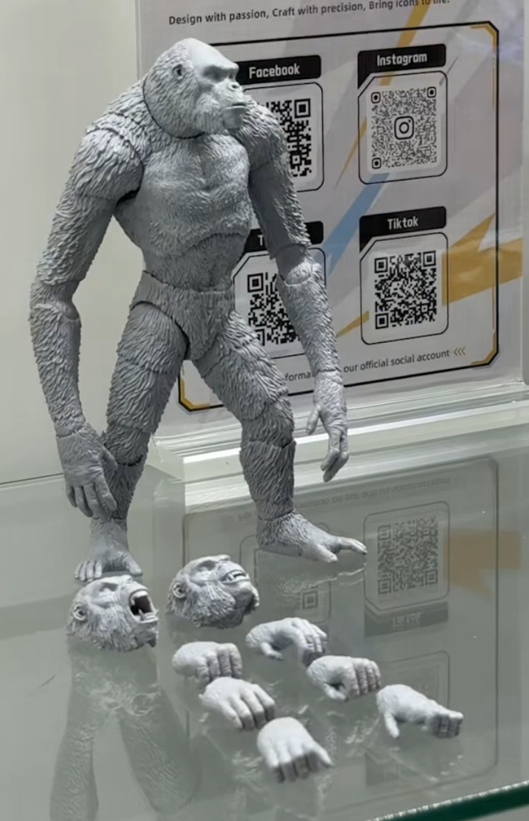 At San Diego Comic Con 2024, Hiya revealed a new King Kong figure based on the character's appearance in Godzilla x Kong: The New Empire. The figure features a battle axe accessory, two alternate snarling and roaring head parts, and six alternate hands, one of which represents Kong's hand after it was frozen by Shimo in the film. On August 2, the figure was fully unveiled.