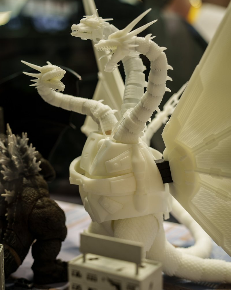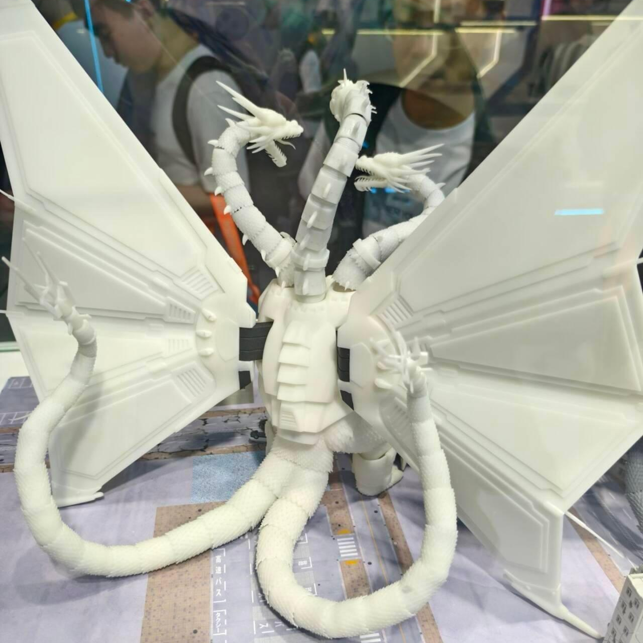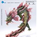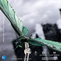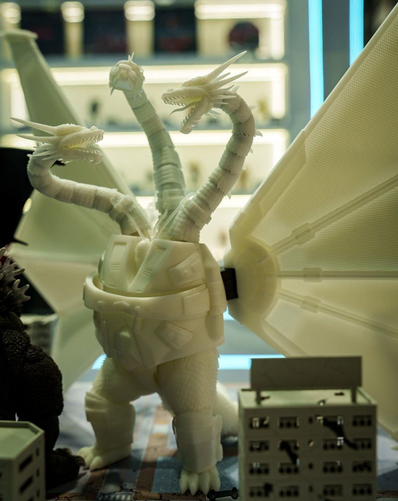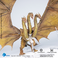 Hiya revealed an Exquisite Basic King Ghidorah figure based on the character's appearance in Godzilla vs. King Ghidorah. The figure stands at 33 centimeters tall and has a wingspan of 47 centimeters. Its wings are made of PVC material with a bendy wire inside them to allow for more posing. Included with the figure are three support stands.