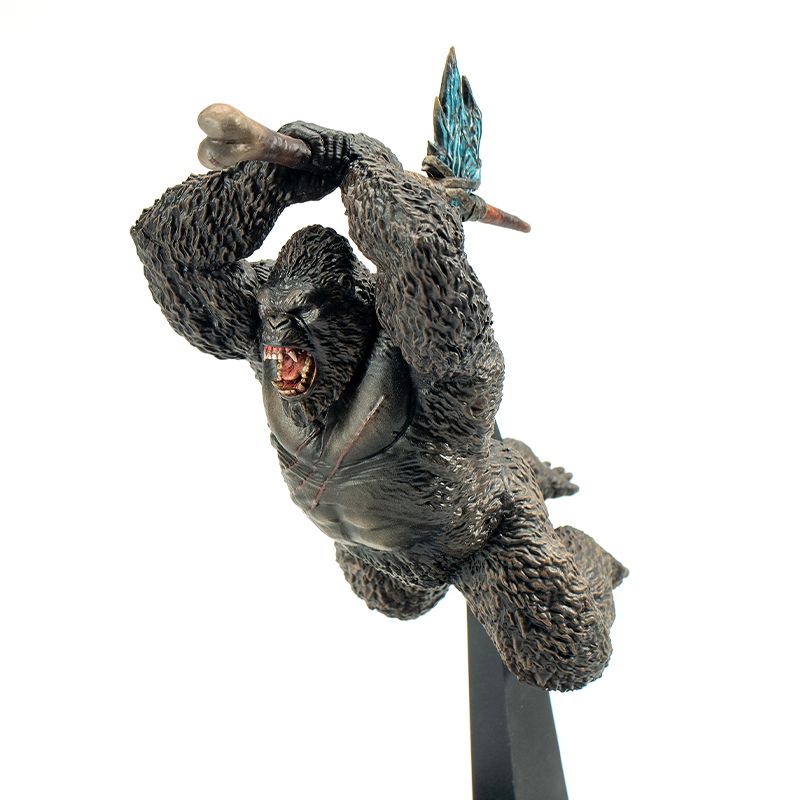 The Stylist Series Kong figure is based on the character's appearance in Godzilla vs. Kong. Specifically, it is sculpted in a dynamic pose of Kong jumping in the air and bringing down his battle axe from the film's Hong Kong battle. The figure includes a stand to suspend it in the air, and stands approximately 10 inches tall.