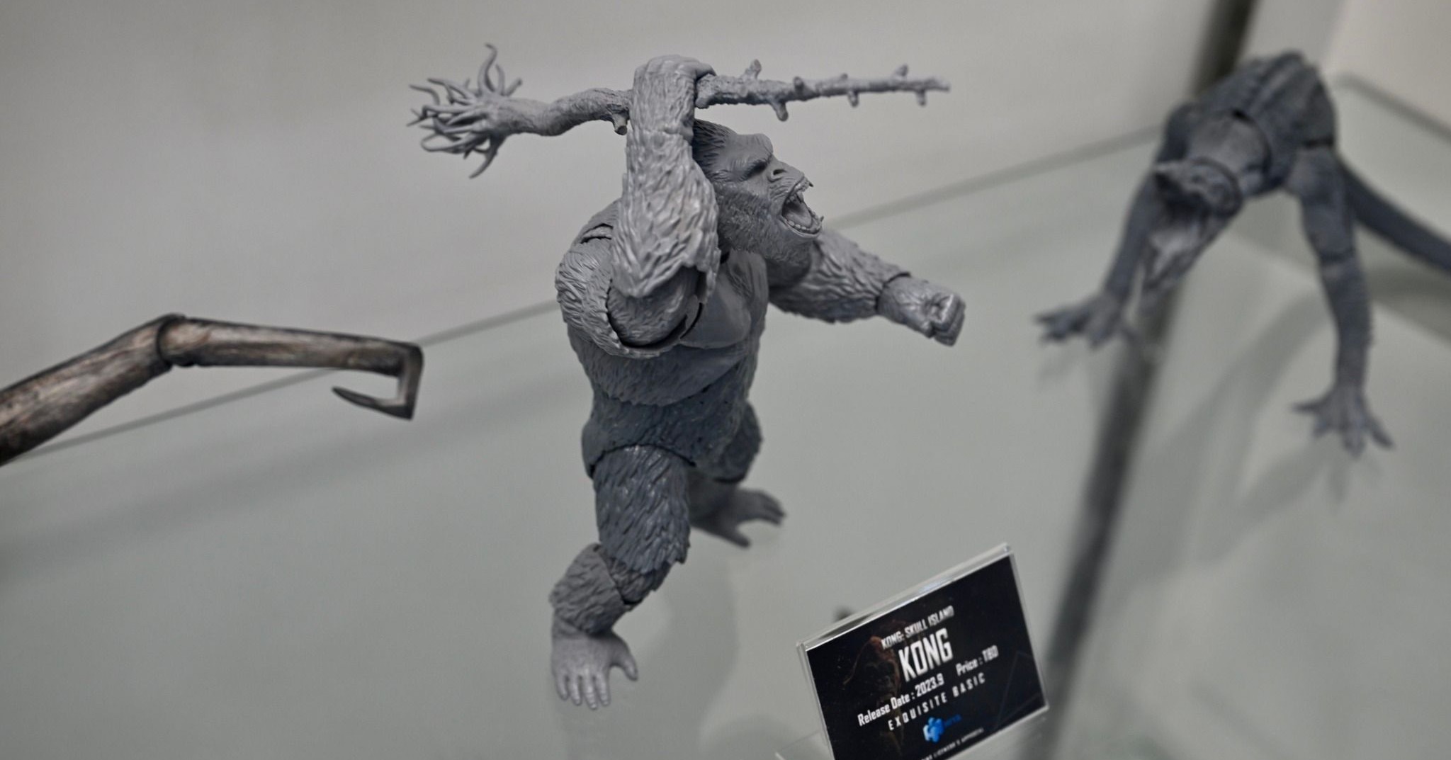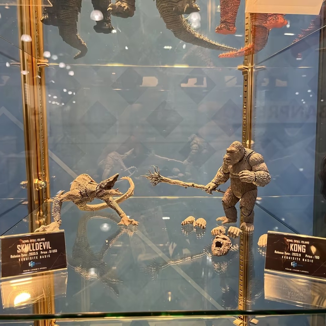 An unpainted prototype of an Exquisite Basic Kong figure, based on the character's appearance in Kong: Skull Island, was revealed at San Diego Comic-Con 2023. An alternate head part and three pairs of alternative hand pieces are included with the figure. A tree accessory is also included with the figure, representing the one Kong wields during his battle with the Skull Devil in the film. Images of the fully-painted figure were unveiled on November 16, 2023.