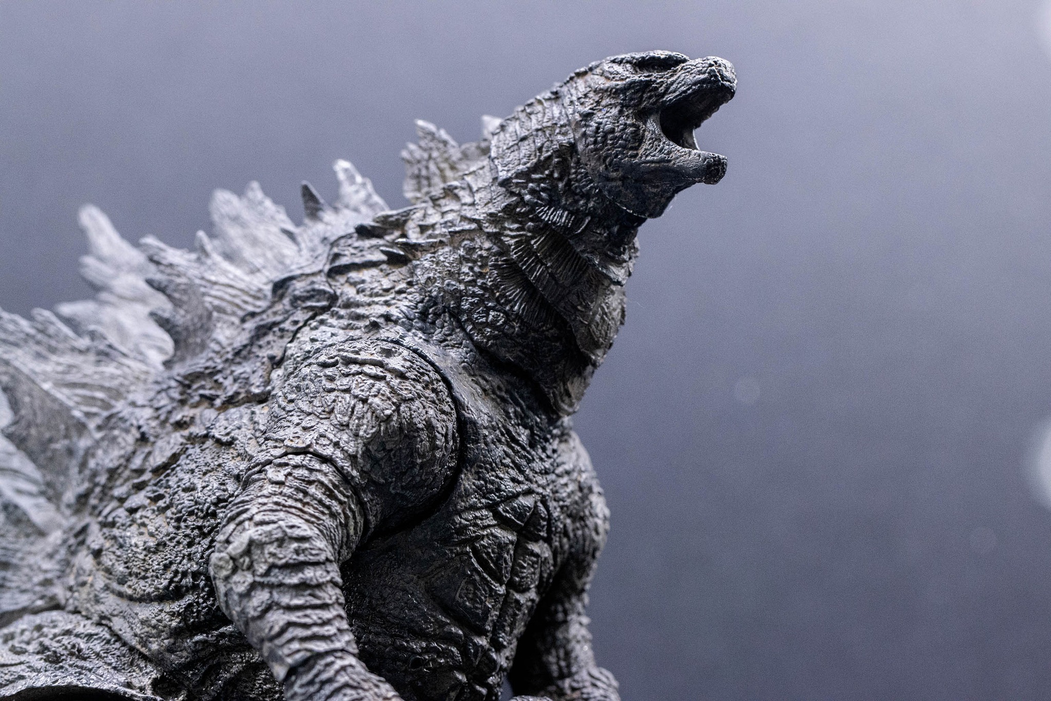 An Exquisite Basic Godzilla figure based on the character's appearance in Godzilla: King of the Monsters stands at 7 inches tall with a newly designed neck and mouth for wider range of articulation.
